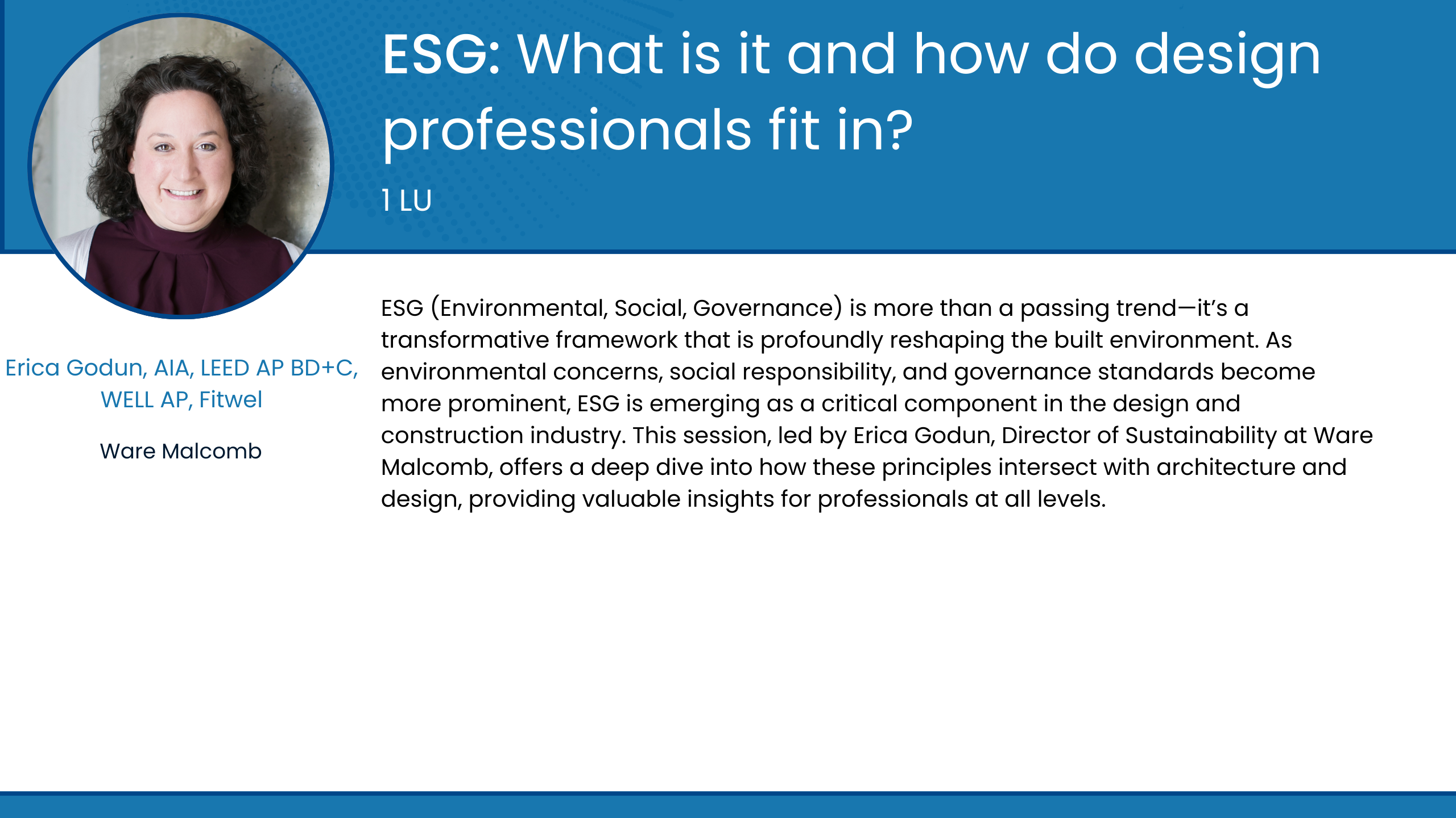 10:00 AM: ESG: What is it and how do design professionals fit in?