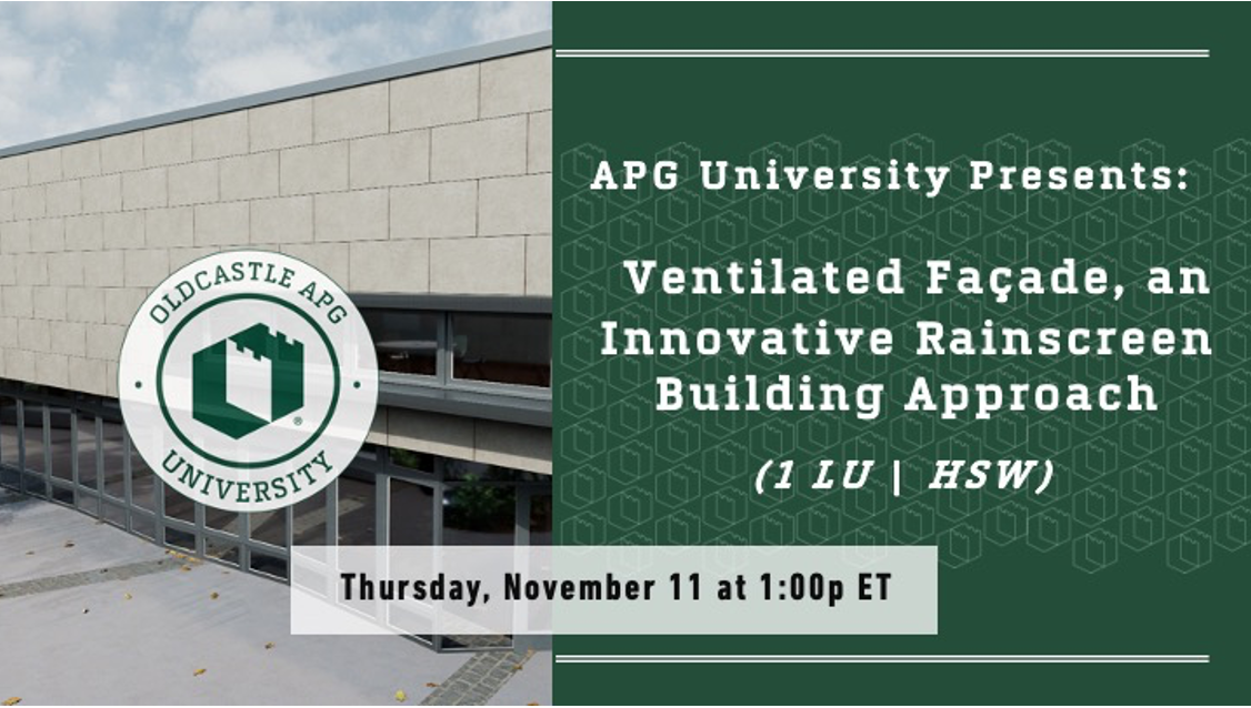 Join industry experts from Oldcastle APG & Echelon Masonry as we dive into wide range of rainscreen systems and how to effectively design with each. We will explore how to enhance thermal performance, meet required energy compliance standards, and enhance the health, safety, and wellness of your occupants -not to mention the aesthetics of your projects most effectively