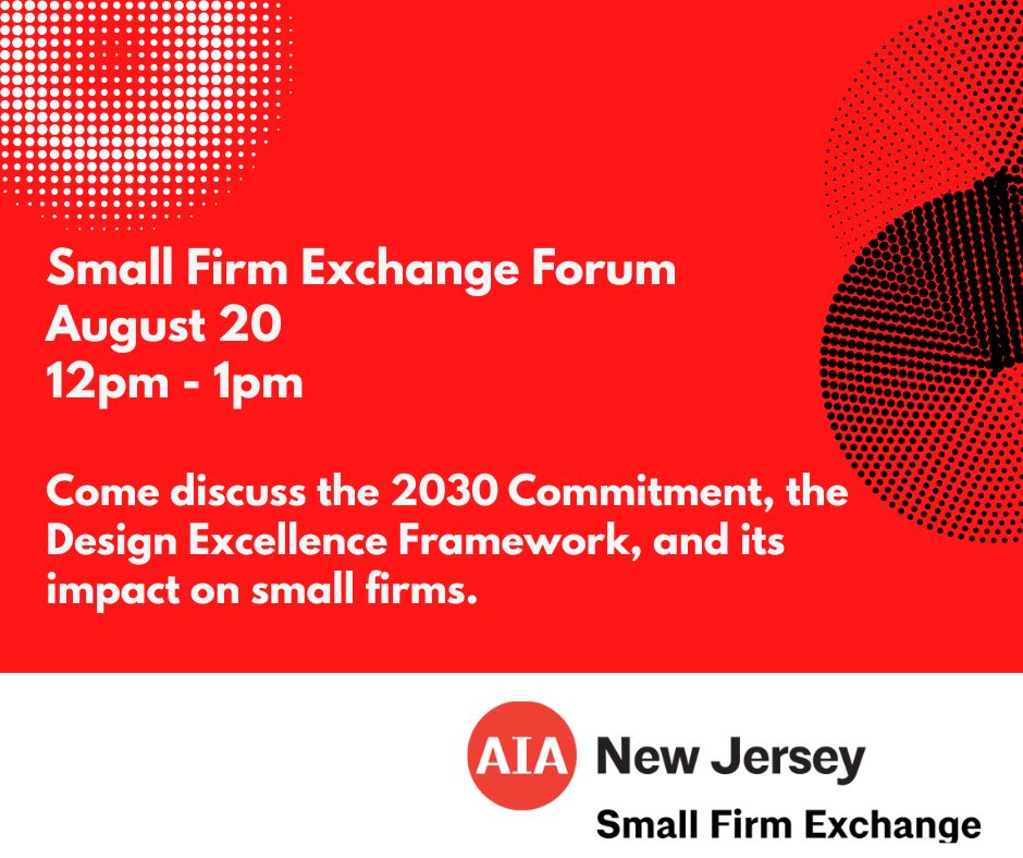 Join the AIA NJ Small Firm Exchange for a special lunchtime forum exploring how small firms can engage with the AIA 2030 Commitment and the Framework for Design Excellence—two critical tools for advancing climate action through architecture. These initiatives are now part of the 2025 AIA New Jersey Design Awards submission requirements, making this session Read More